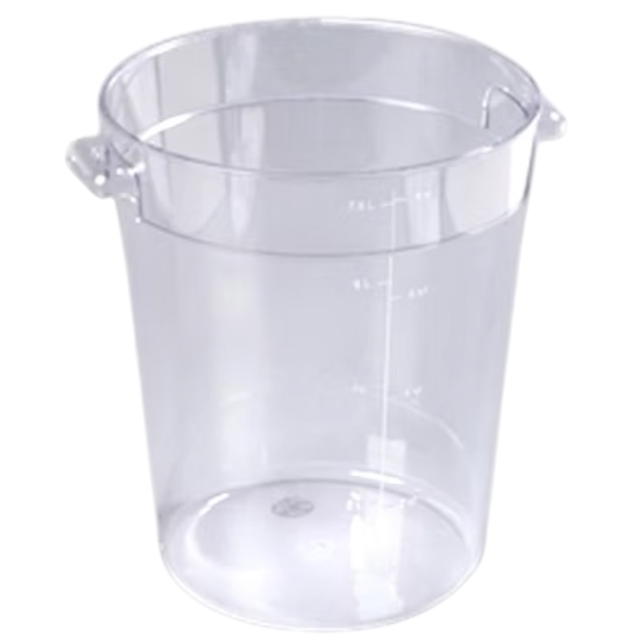 The smooth, curved interior prevents material build-up, making it easy to fully empty and clean. Dual-sided measurement markings—colored graduations on one side and raised embossed indicators on the other—allow for quick and accurate volume checks in liters and quarts. A built-in date indicator panel makes labeling and organizing contents simple, helping track preparation dates and maintain proper rotation.