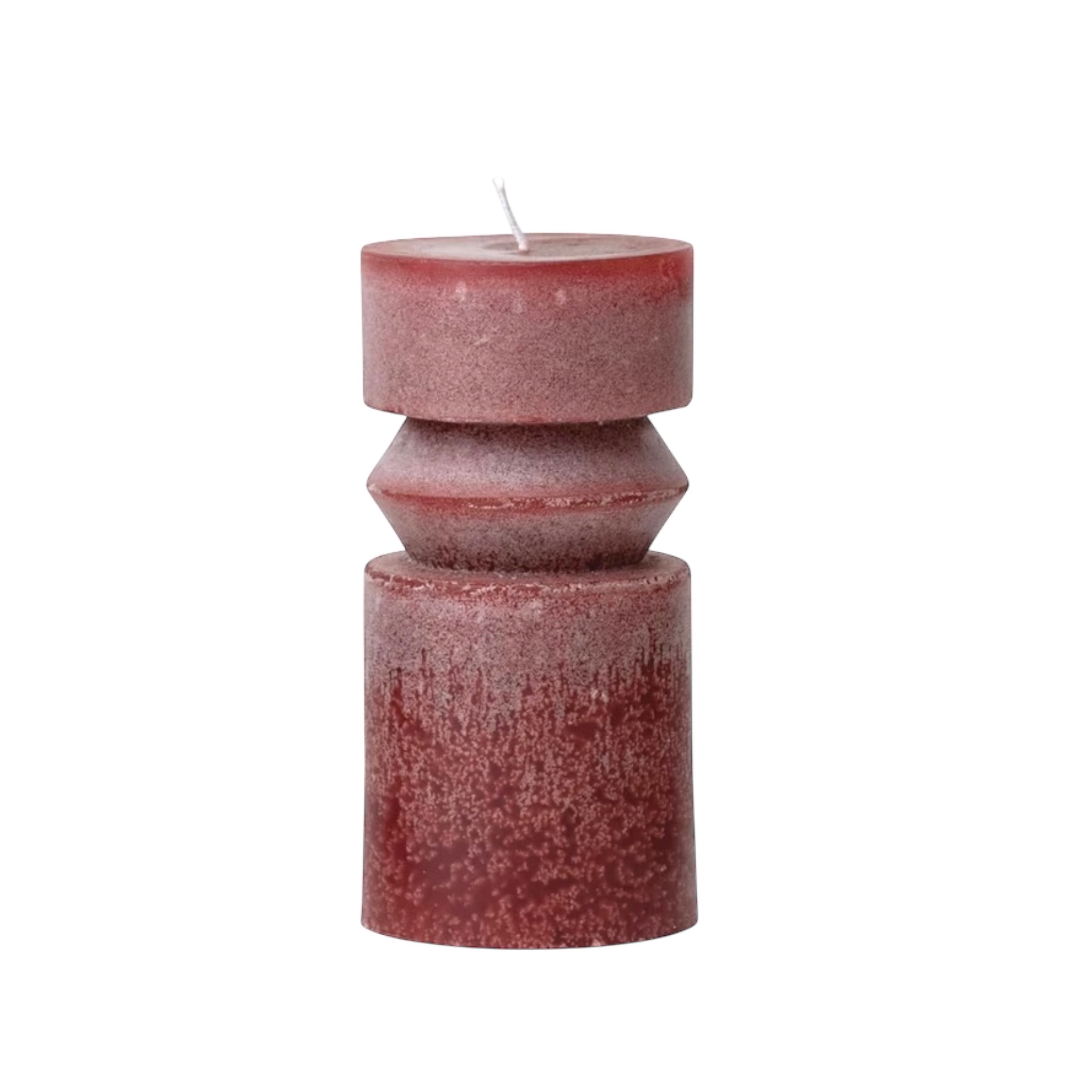 This intricately carved totem pillar candle showcases a striking sculptural design. Mix and match the hues and sculptural silhouettes of our artfully crafted totems and tapers for a refined candlelight arrangement on a dining table or mantelpiece.
